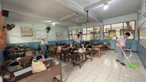 SMAN 5 Kota Tangerang melaksakan kegiatan Pembiasaan Hidup bersih , di kelas juga bersih