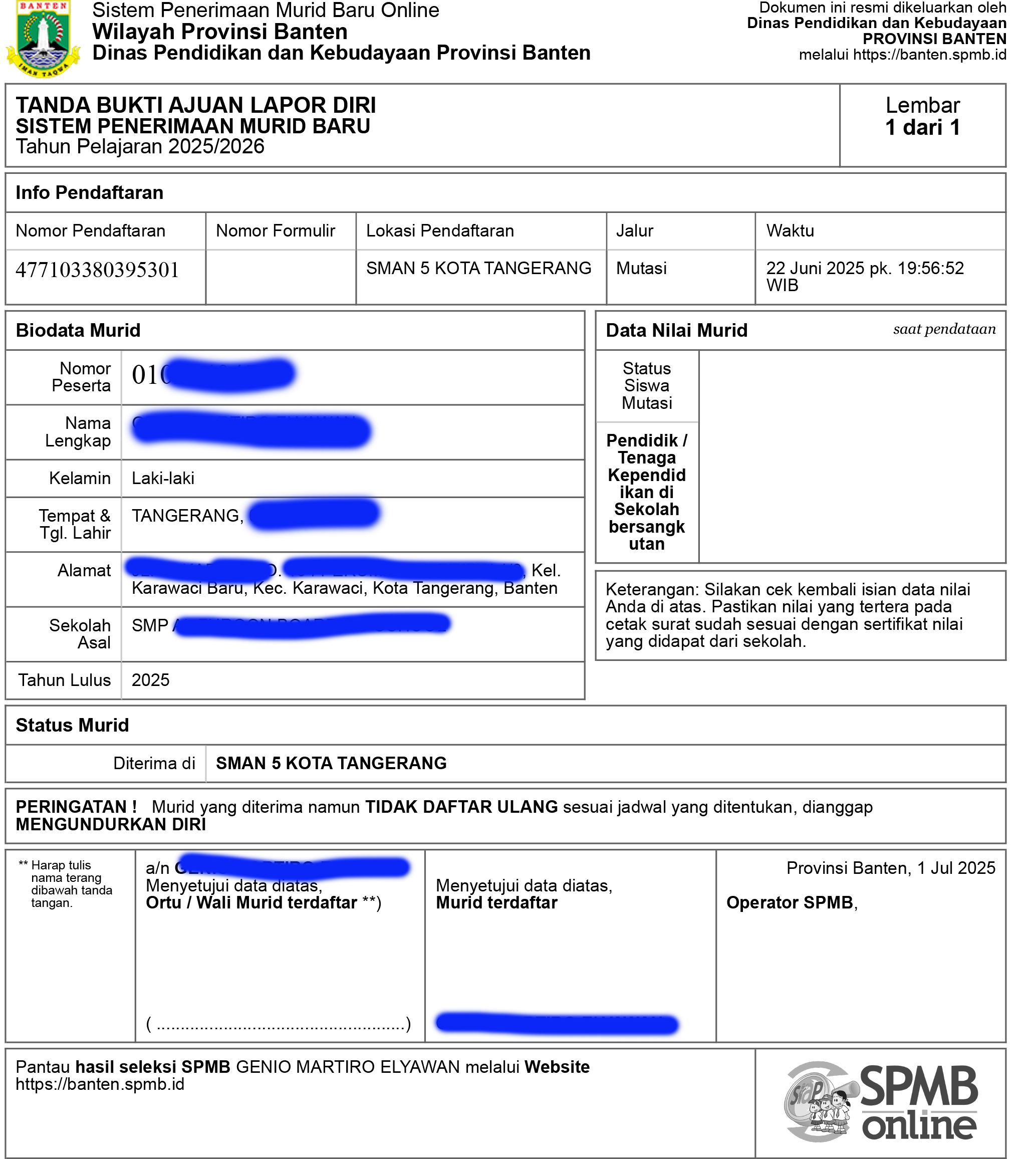 Daftar Ulang bagi Siswa/ Siswi yang diterima di SMA NEGERI 5 TANGERANG, silahkan klik link berikut ini : https://s.id/DAFTAR-ULANG-SPMB-SMAN5
